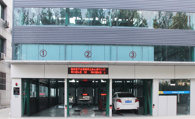 在兩側(cè)泊位的中央設(shè)有巷道堆垛機(jī),整個(gè)車庫的運(yùn)行均由堆垛機(jī)和搬運(yùn)器來完成。汽車入庫時(shí),汽車停在出入庫臺(tái)上,堆垛機(jī)從出入庫臺(tái)上取走汽車后在巷道內(nèi)行走并提升,將汽車運(yùn)送到指定層的泊位旁,堆垛上的搬運(yùn)器將汽車從堆垛機(jī)送入泊位,堆垛機(jī)利用先進(jìn)技術(shù)無縫整合了升降和行走兩套系統(tǒng),并配備變頻控制系統(tǒng),采用激光測(cè)距來行走定位,采用光通訊無線信號(hào)傳送,實(shí)現(xiàn)邊行走邊升降的功能以達(dá)到節(jié)約時(shí)間、降低能耗和空間利用最大化的目的。