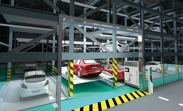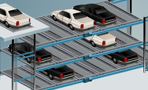 多層循環(huán)類立體車庫(kù)通過載車板左右移動(dòng)和上下移動(dòng)的相互配合使載車板循環(huán)運(yùn)動(dòng),從而實(shí)現(xiàn)車輛多層存放。